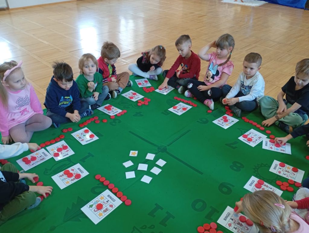 • elementy immersji językowej, czyli naturalnego „zanurzenia” w języku w codziennych sytuacjach przedszkolnych.