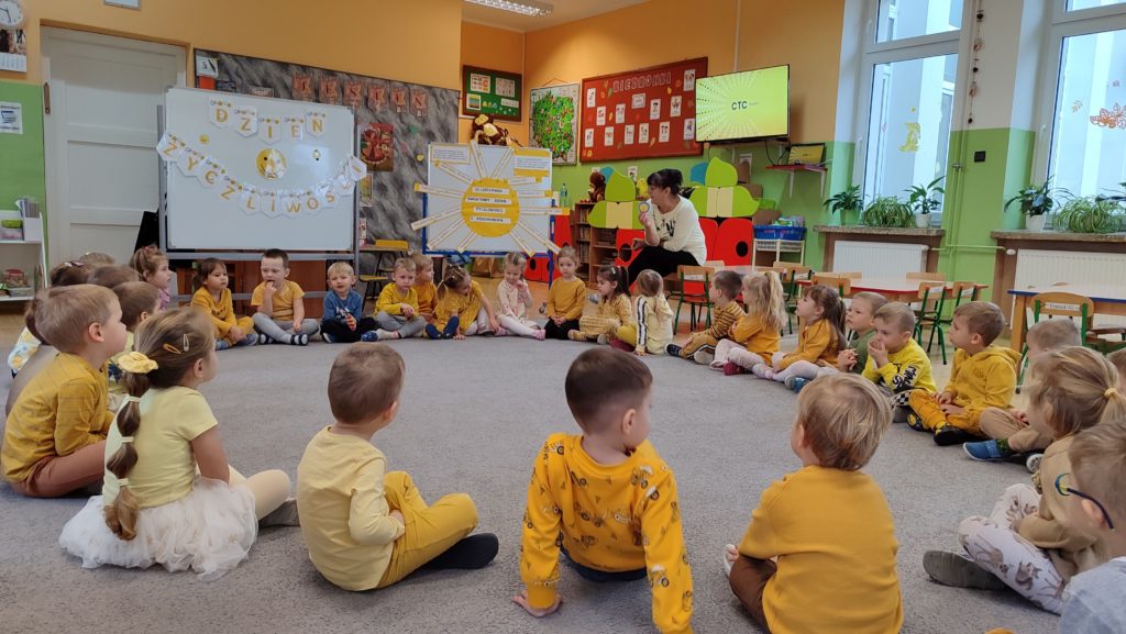Dnia 21 listopada 2024 r. dzieci z grupy Pszczółki i Biedronki  obchodziły Światowy Dzień Życzliwości i Pozdrowień.