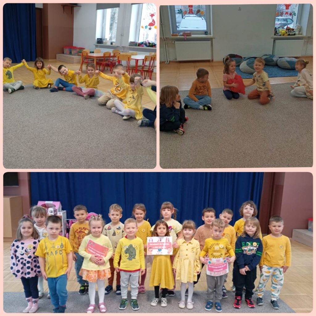 Dzisiaj w naszym przedszkolu królował kolor żółty – symbol radości, dobroci i życzliwości. Wszystkie grupy przyszły ubrane właśnie w tym kolorze, tworząc niezwykle pozytywną i słoneczną atmosferę.